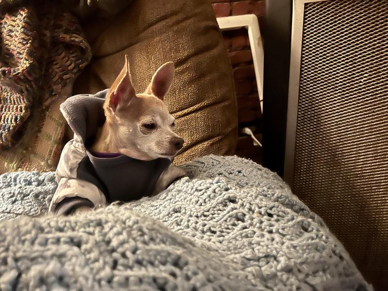 If you’ve ever had a Chihuahua/Chi mix, you know the struggle. The broad chest, twiggy limbs, and ginormous skull make these pups defy any size chart out there. I previously ordered this in a different print from the brand directly and was chagrined when they downplayed the final sale notice and wouldn’t accept the return. So I came straight to chewy, knowing they would be great about returns if the next size also failed to fit my Boytoy. Thankfully, this worked out beautifully - it’s super easy to get my dog into and kept him warm in the Kansas City chill on our recent trip. I was grateful for the assurance of shopping at Chewy and will absolutely keep coming back!