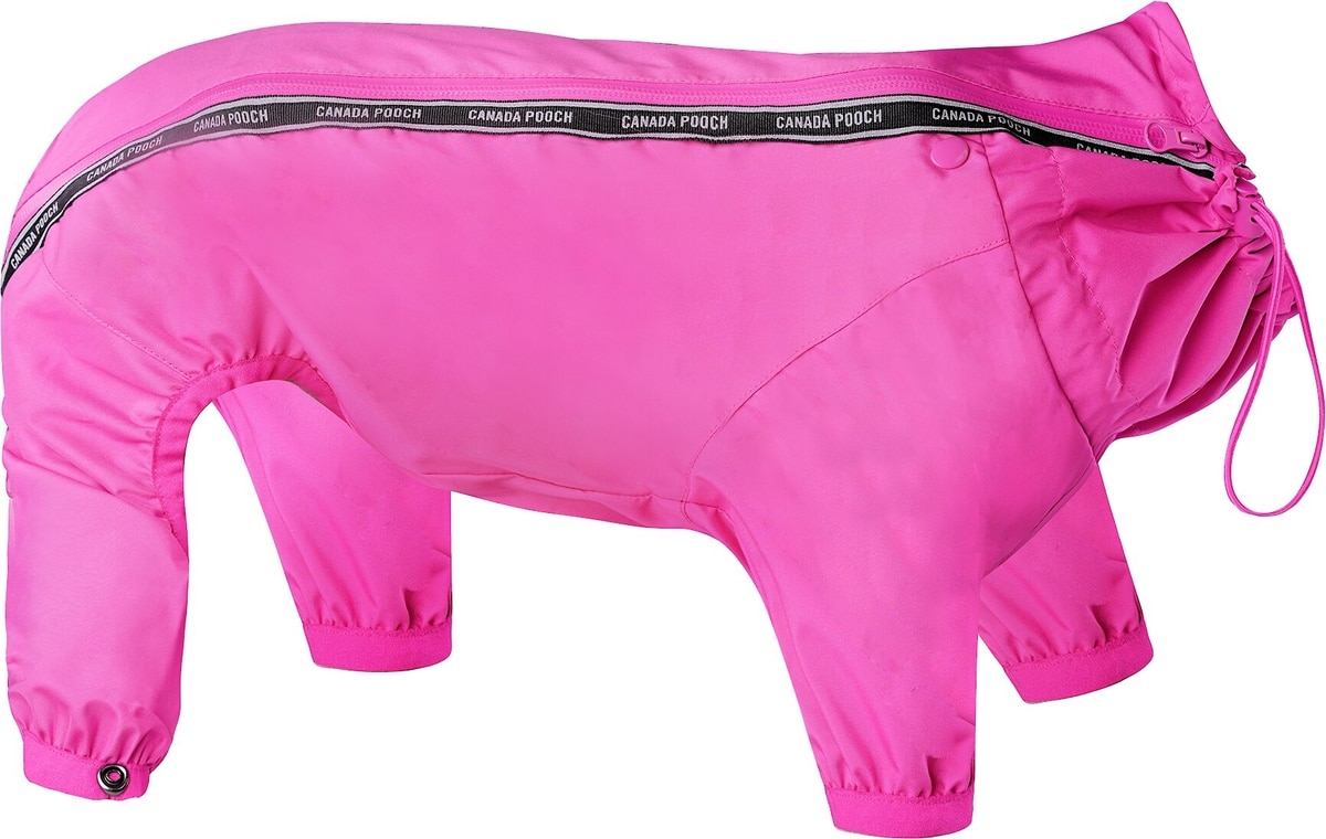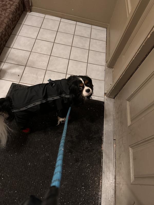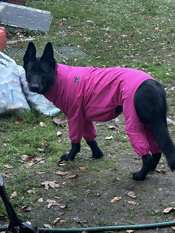 Congratulations to Luna the only dog we have ever had (and we have five dogs currently) who has needed a full body anti mud suit. Luna refuses to stay out of the dirt pile, mom doesn’t want to bathe her three times a day.. so this is the compromise. Luna is not sorry. This is very well made and keeps Luna clean. The only drawback is that it is hard to get on… Luna is a tornado and this is a two person job (along with 67 treats). This is a Luna issue not a jacket issue. Luna is under a year so hopefully this will improve. She has stubby little legs and a long body (definitely use their size calculator). Luna endorses this product!