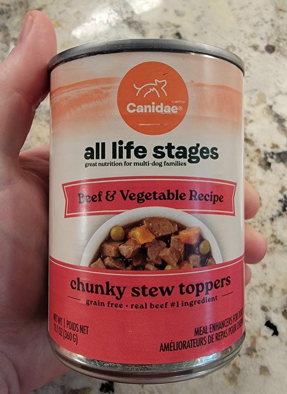 - DealCANIDAE All Life Stages Chunky Stew Toppers Multi-Protein & Vegetable Recipe Wet Dog Food, 12.7-oz can, case of 6$23.99 Chewy Price$22.79 Autoship PricePromo, Spend $100, Get $30 eGift Card with code NEWYEAR +1 deal