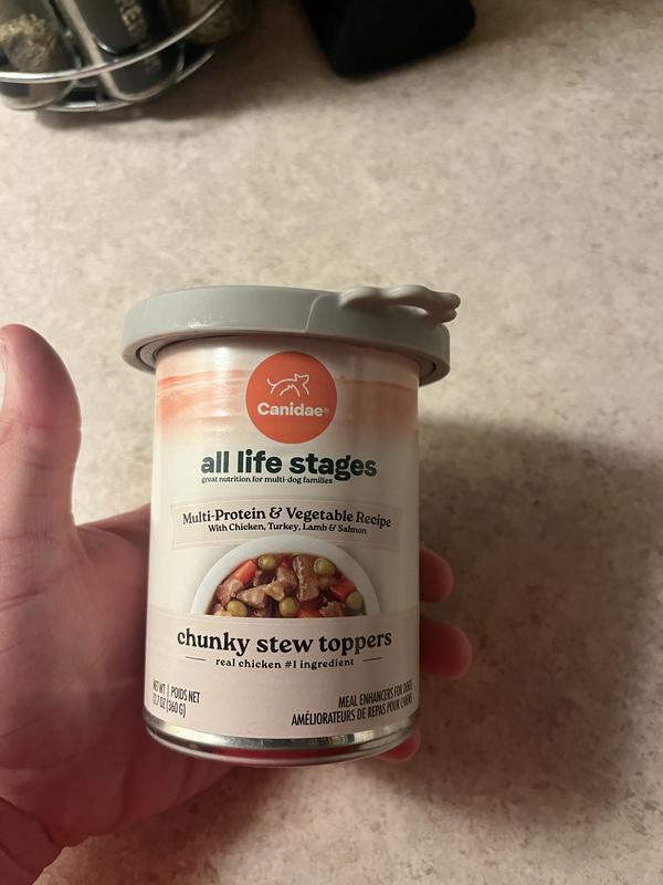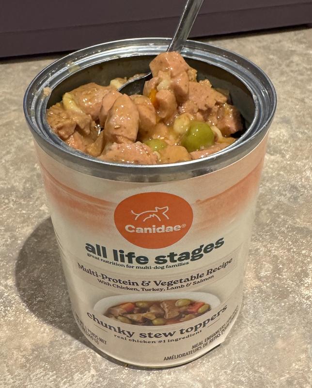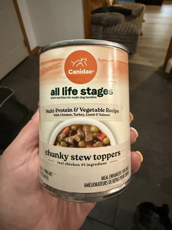 - DealCANIDAE All Life Stages Chunky Stew Toppers Beef & Vegetable Recipe Wet Dog Food, 12.7-oz can, case of 6$23.94 Chewy Price$22.74 Autoship PricePromo, Spend $100, Get $30 eGift Card with code NEWYEAR +1 deal