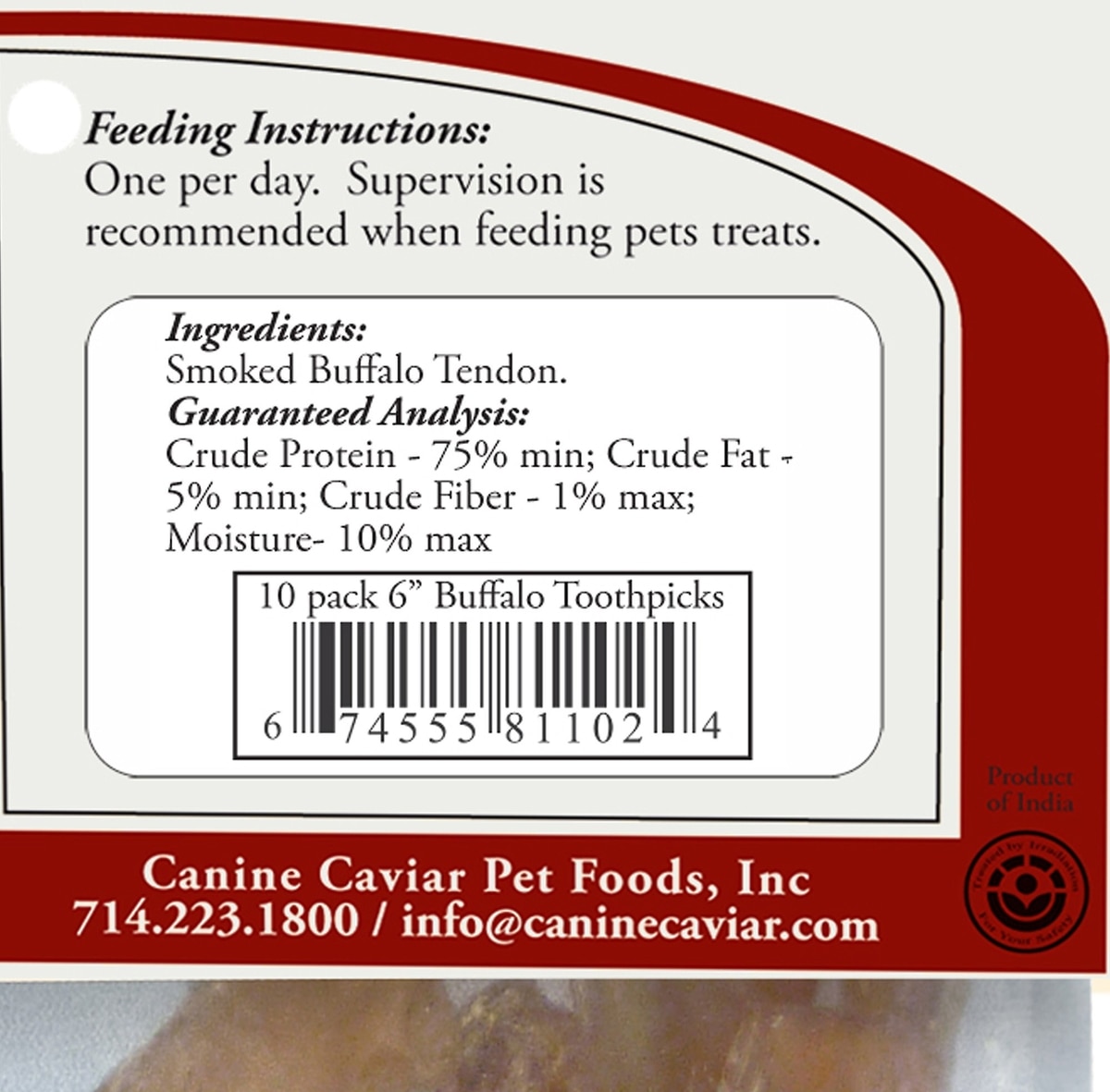 Canine Caviar Buffalo Toothpicks 6" Dog Treats, 10 count