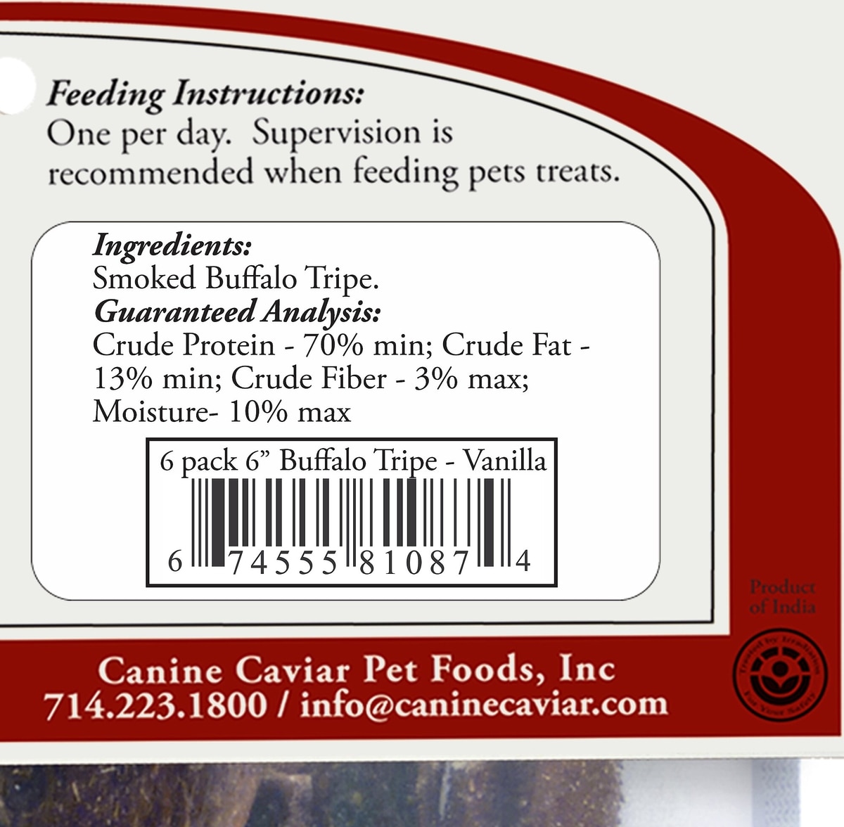 Canine Caviar Buffalo Tripe Vanilla 6" Dog Treats, 6 pack