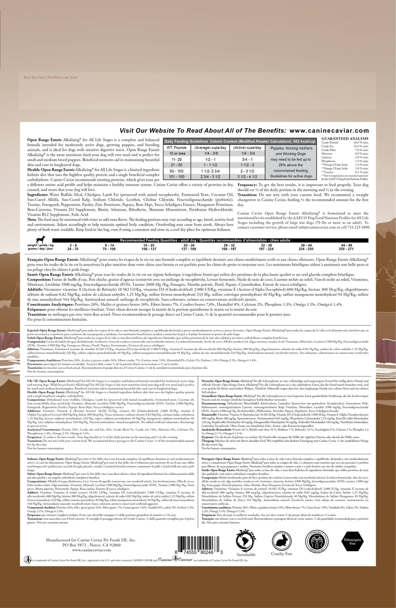 - DealCanine Caviar Limited Ingredient Diet Open Meadow Alkaline Holistic Entree All Life Stages Dry Dog Food, 11-lb bag$55.77 Chewy Price$52.98 Autoship PricePromo, Spend $100, Get $30 eGift Card with code NEWYEAR +2 deals