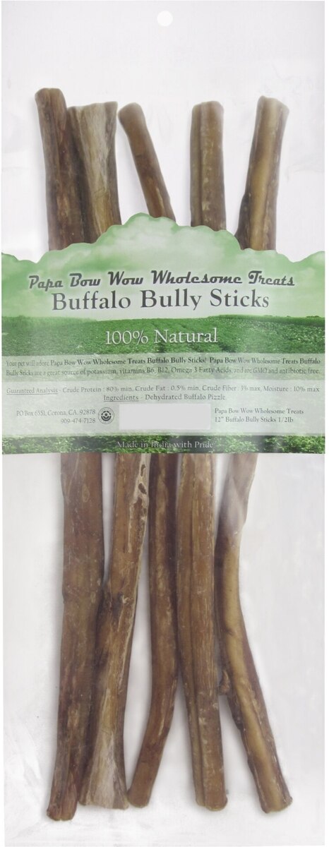 Canine Caviar Papa Bow Wow 12" Buffalo Bully Stick Dog Treats, 0.5-lb bag