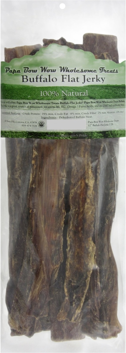 Canine Caviar Papa Bow Wow 12" Buffalo Jerky Flat Dog Treats, 0.5-lb bag