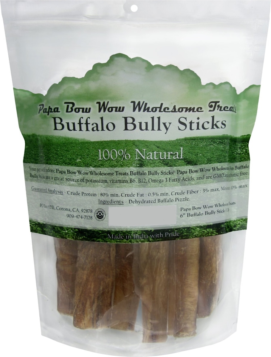 Canine Caviar Papa Bow Wow 6" Buffalo Bully Stick Dog Treats, 0.5-lb bag