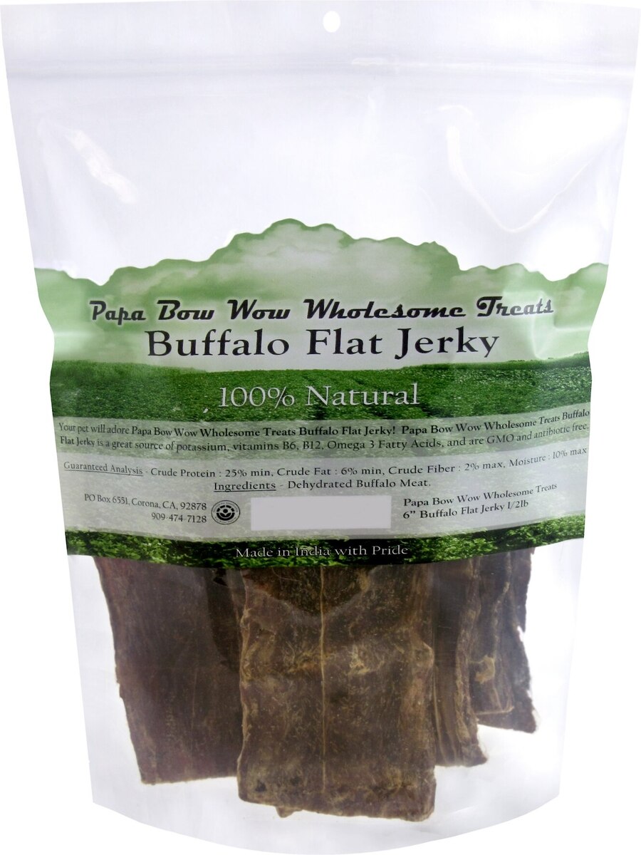 Canine Caviar Papa Bow Wow 6" Buffalo Jerky Flat Dog Treats, 0.5-lb bag