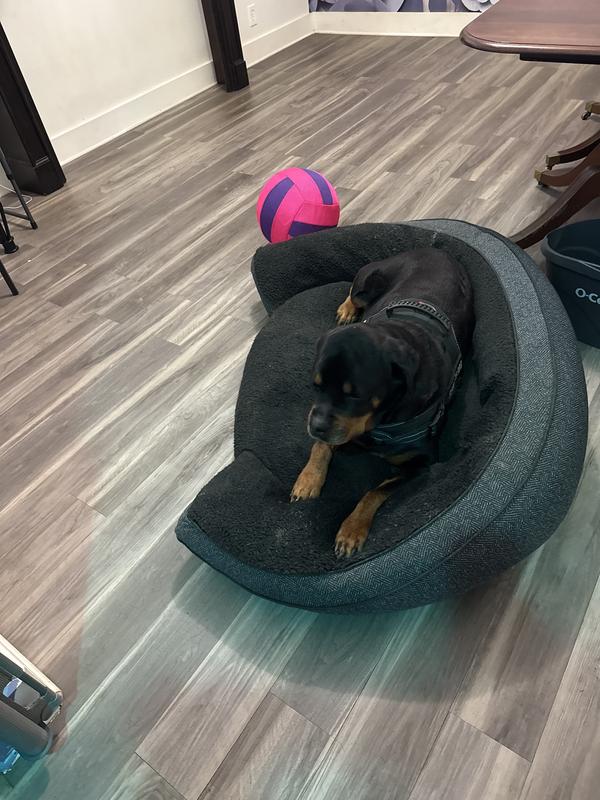 Within minutes of pulling this bed out of the box and placing it on the floor where her old one was, my dog cozily plopped herself into this bed and made herself at home. We've had it for a few weeks now and I've noticed that she is spending a lot more time relaxing and sleeping on this roomy, comfortable bed than she was in her last one. So, we're both happy campers. It's large and feels substantial so I look forward to having this one for a long while.