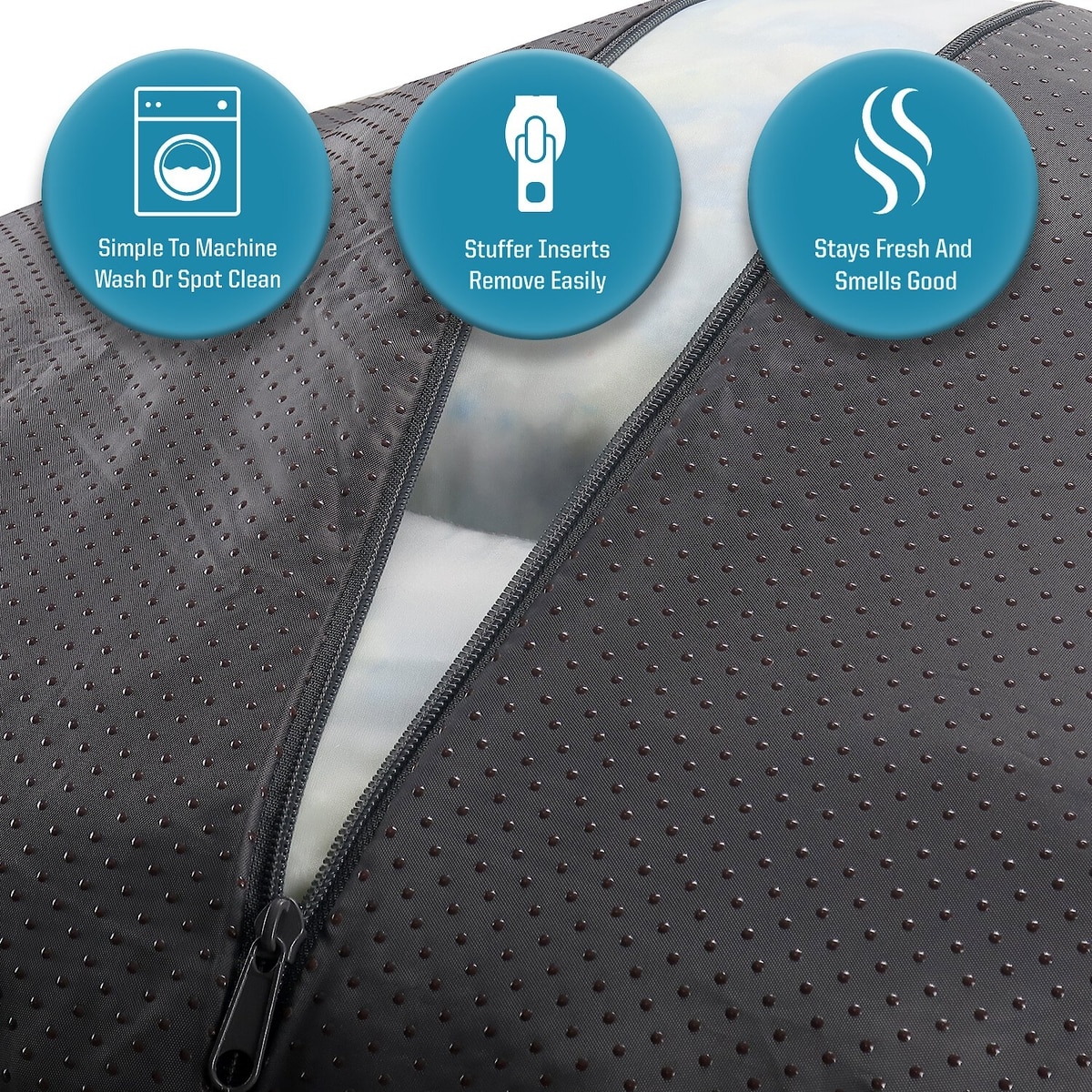 The center of the bed is filled with memory foam, which is great. For the small bed, it’s held in a removable cloth sack without zippers. However, the outer circle