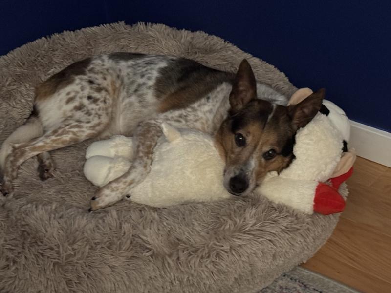 Maggie snuggles,stretches,nests & moans with comfort. Perfect for her!