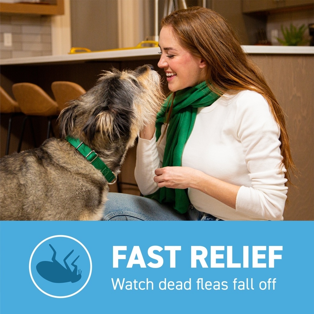 A single dose of Capstar starts killing adult fleas within 30 minutes. Just one tablet kills over 90% of fleas within 4 hours for dogs and 6 hours for cats. It’s easy to use, too— just place it directly in your pet’s mouth or hide it in food.