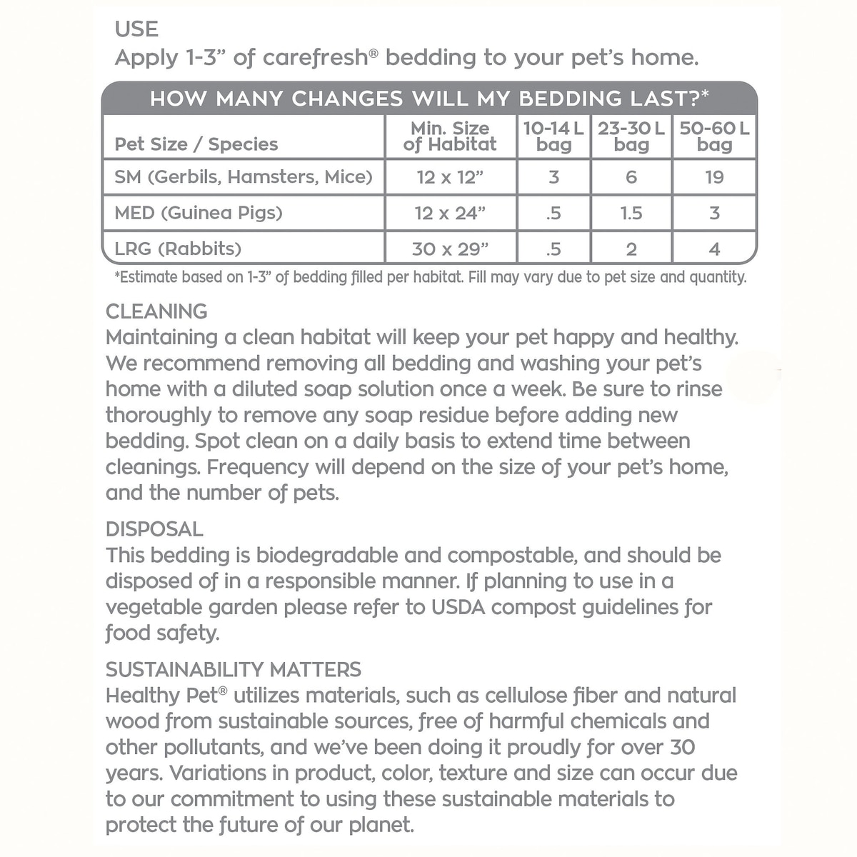 As a trusted brand for small pets since 1985, Carefresh all-natural cloud-like bedding is free of harmful chemicals and pollutants and made with natural reclaimed paper fiber from sustainable sources. Show your small pet the love with Carefresh.
