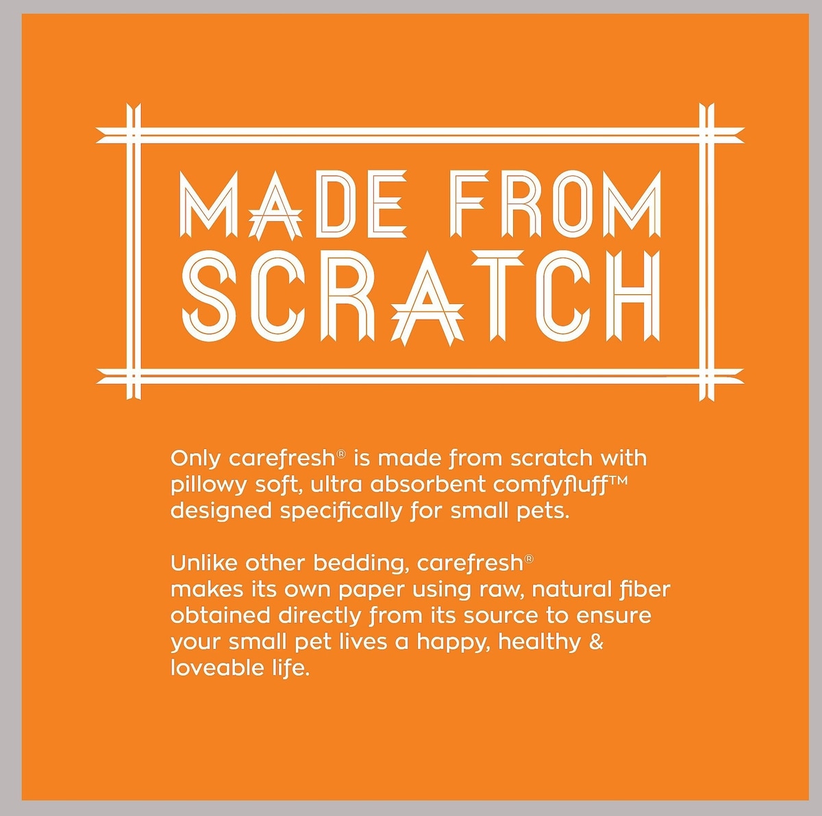 Carefresh is made from scratch with soft, ultra-absorbent paper fiber designed specifically for small pets. They make their own comfy, fluffy paper using raw, natural fiber for one-of-a-kind supreme pillowy softness your small pet will love.