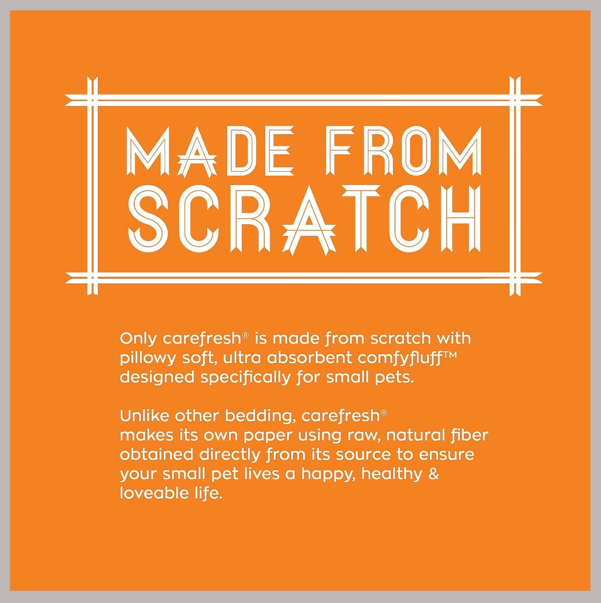 Carefresh is made from scratch with soft, ultra-absorbent paper fiber designed specifically for small pets. They make their own comfy, fluffy paper using raw, natural fiber for one-of-a-kind supreme pillowy softness your small pet will love.