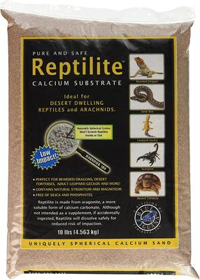 Reptilite sand, is made for use with animals such as leopard geckos. As with any sand substrate, we recommend that the animal be nearly full grown when kept on Reptilite and that feeding not take place on the substrate.