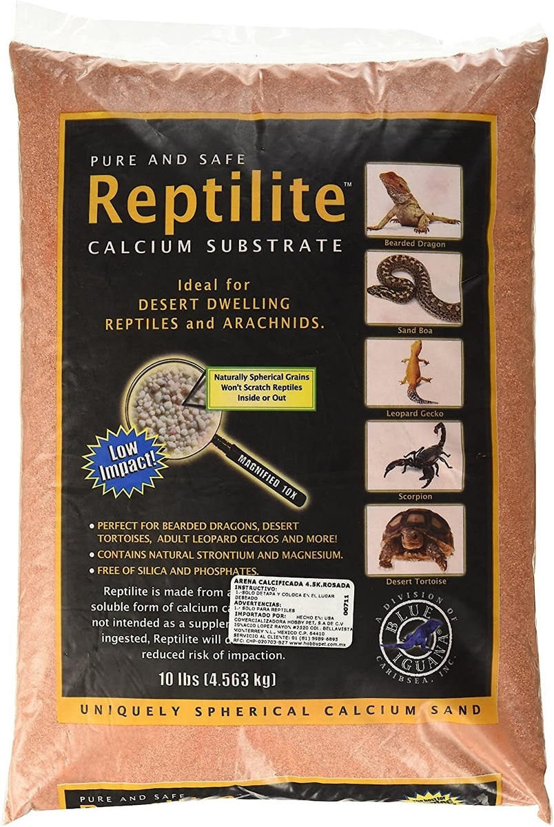 Reptilite sand, is made for use with animals such as leopard geckos. As with any sand substrate, we recommend that the animal be nearly full grown when kept on Reptilite and that feeding not take place on the substrate.
