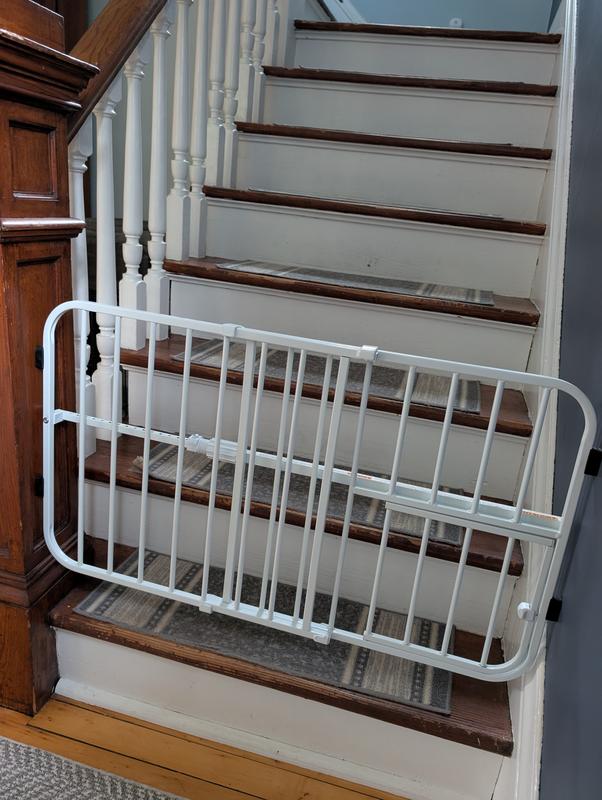 Our senior Labrador needs a little barrier from going up and down stairs when we're not around to spot her. Our old house has a charming, but awkward banister/post and this gate fits perfectly. It's easy to assemble/use and is sturdy enough to prevent my younger Lab from barging through, too.