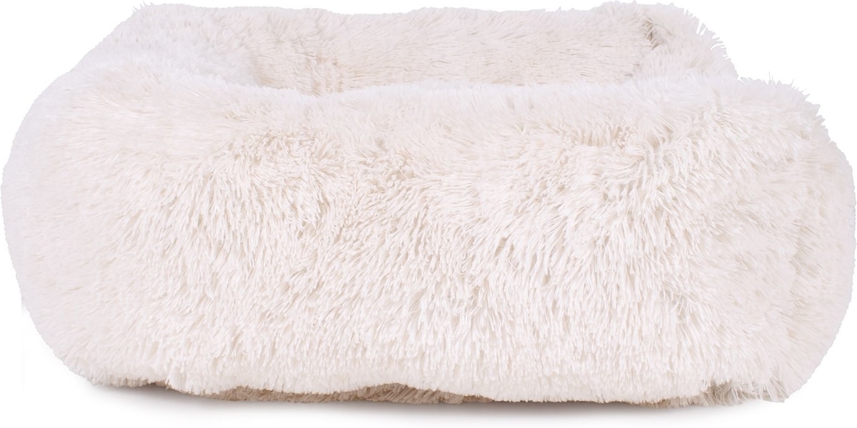 Carolina Pet Faux Fur Kuddler Bolster Dog Bed with Removable Cover, White, Large