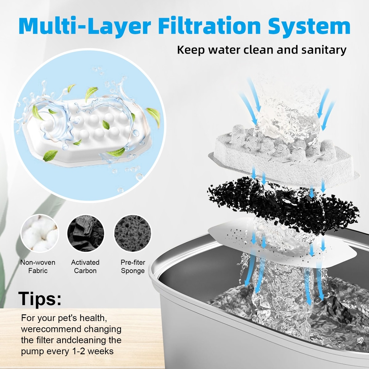 It is recommended to change the filter and clean the pump every 1-2 weeks for this product.