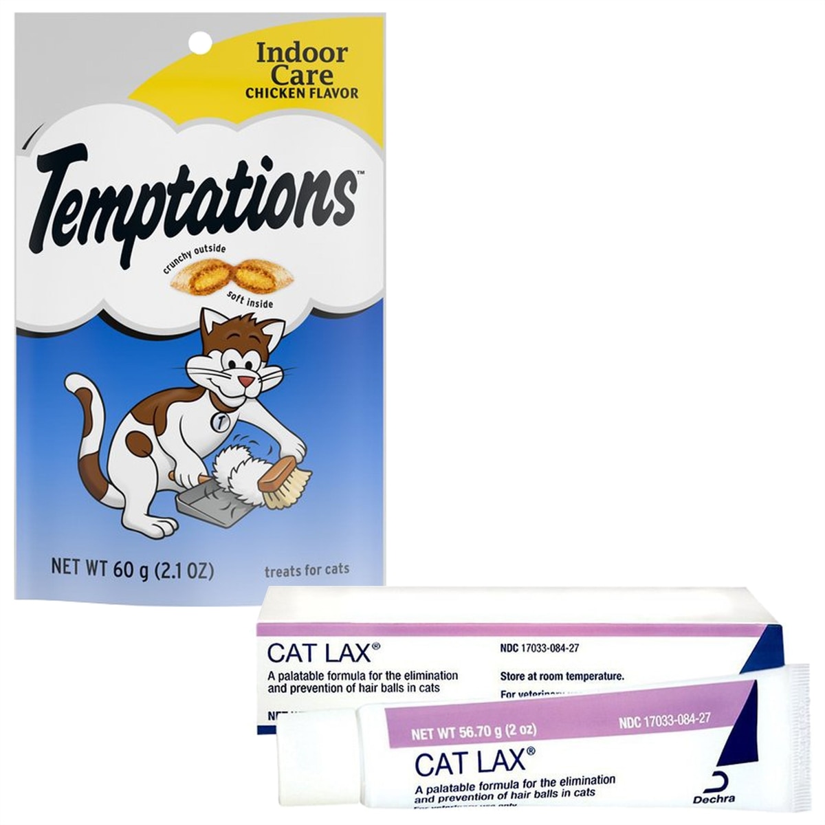 Bundle: Cat Lax Cat Supplement, 2-oz tube & Temptations Indoor Care Chicken Flavor Cat Treats, 2.1-oz bag