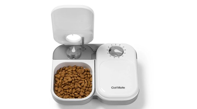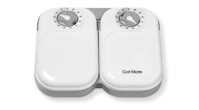 The Cat Mate C200 makes scheduled feeding simple. With two timer-operated bowls holding up to 14 oz each, it’s perfect for cats or a small dog. Plan meals up to 48 hours in advance and keep pets happy—whether you’re away or catching some extra rest.