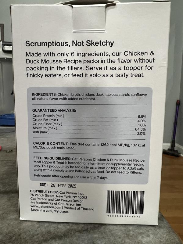 Cat Person by Weruva Chicken & Duck Mousse Grain-Free Wet Cat Food Topper, 3-oz pouch, case of 4