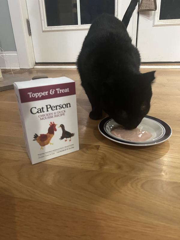 A Variety of Wet Foods Made with premium proteins like salmon, duck, chicken, and turkey, Cat Person all-natural grain-free wet food recipes support healthy hydration. These wet food cups come in delectable pâté and shreds in broth varieties and flavors your cat will love.