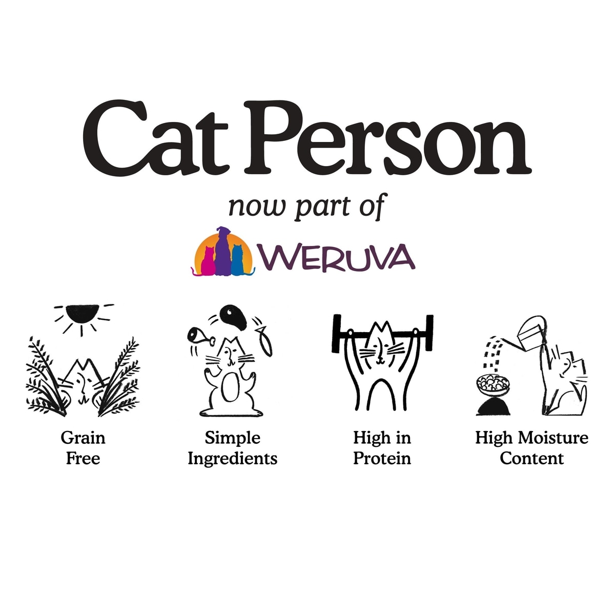 A Variety of Wet Foods Made with premium proteins like salmon, duck, chicken, and turkey, Cat Person all-natural grain-free wet food recipes support healthy hydration. These wet food cups come in delectable pâté and shreds in broth varieties and flavors your cat will love.