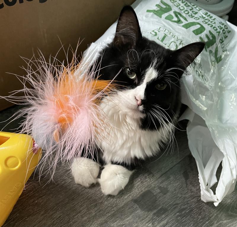 Likes: Sleeping in sunbeams, catnip, heating pads, boxes, hunting, staring, naps, meat.