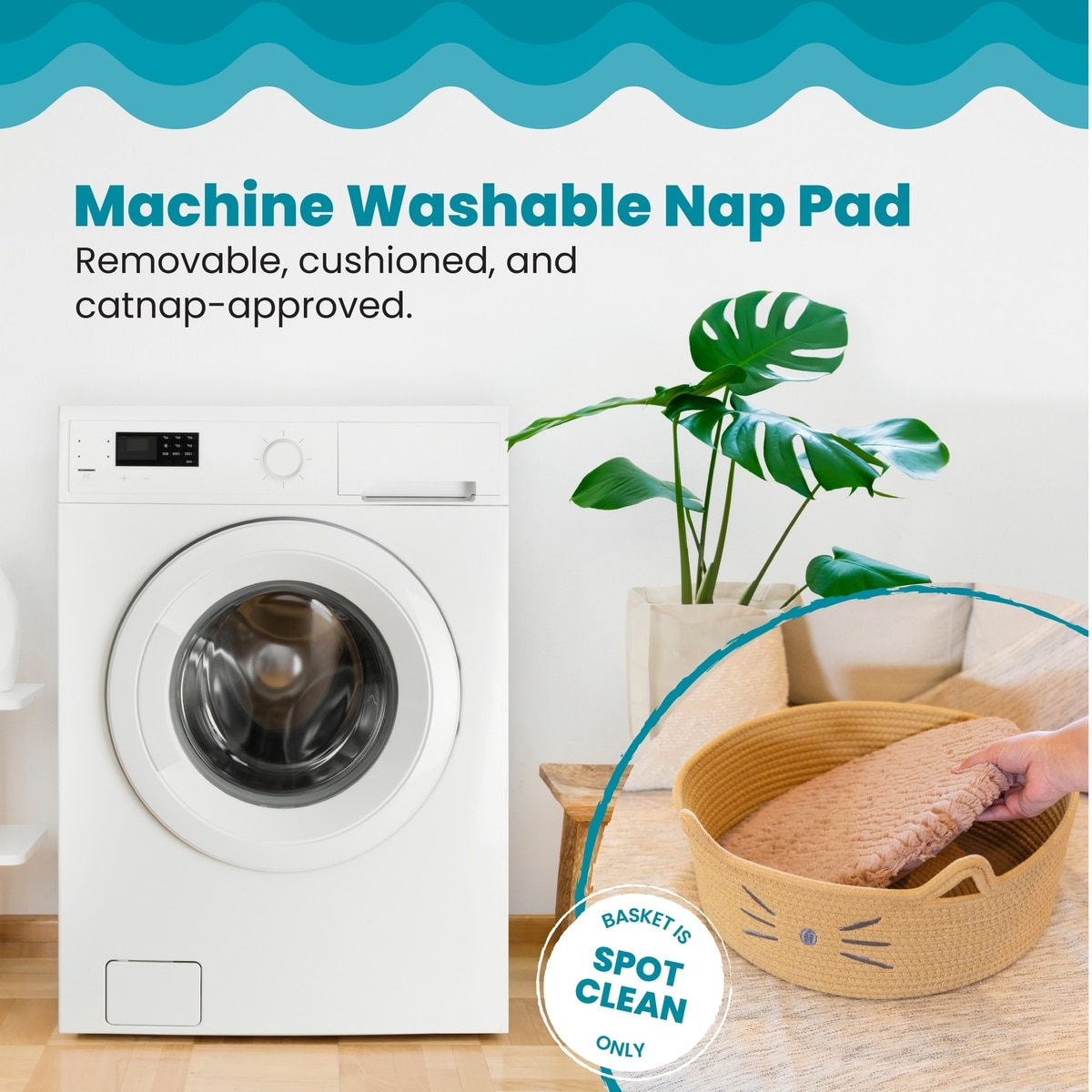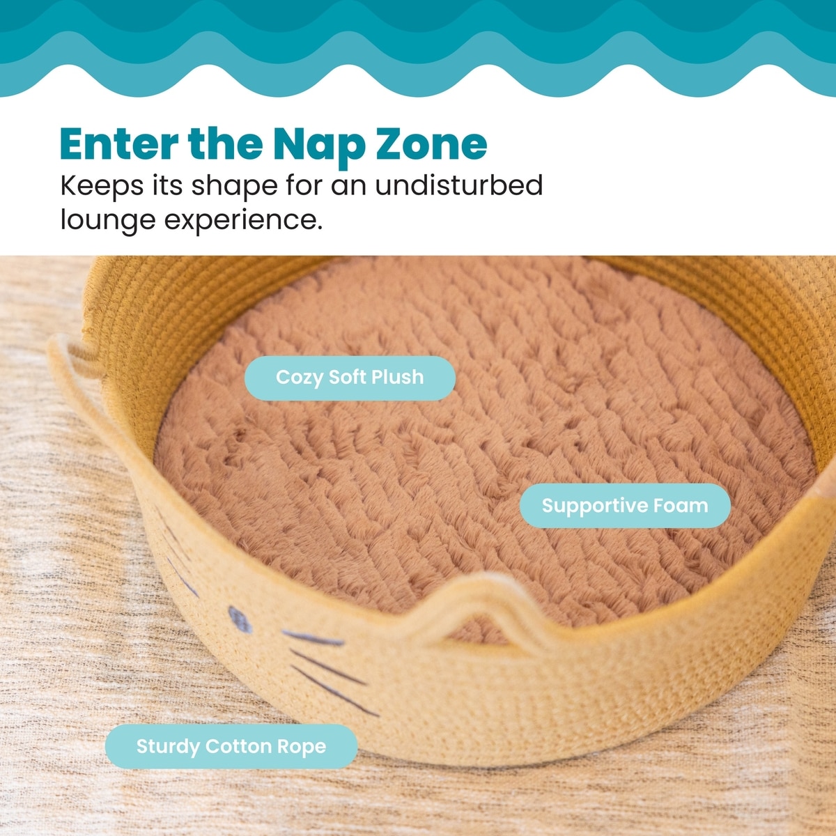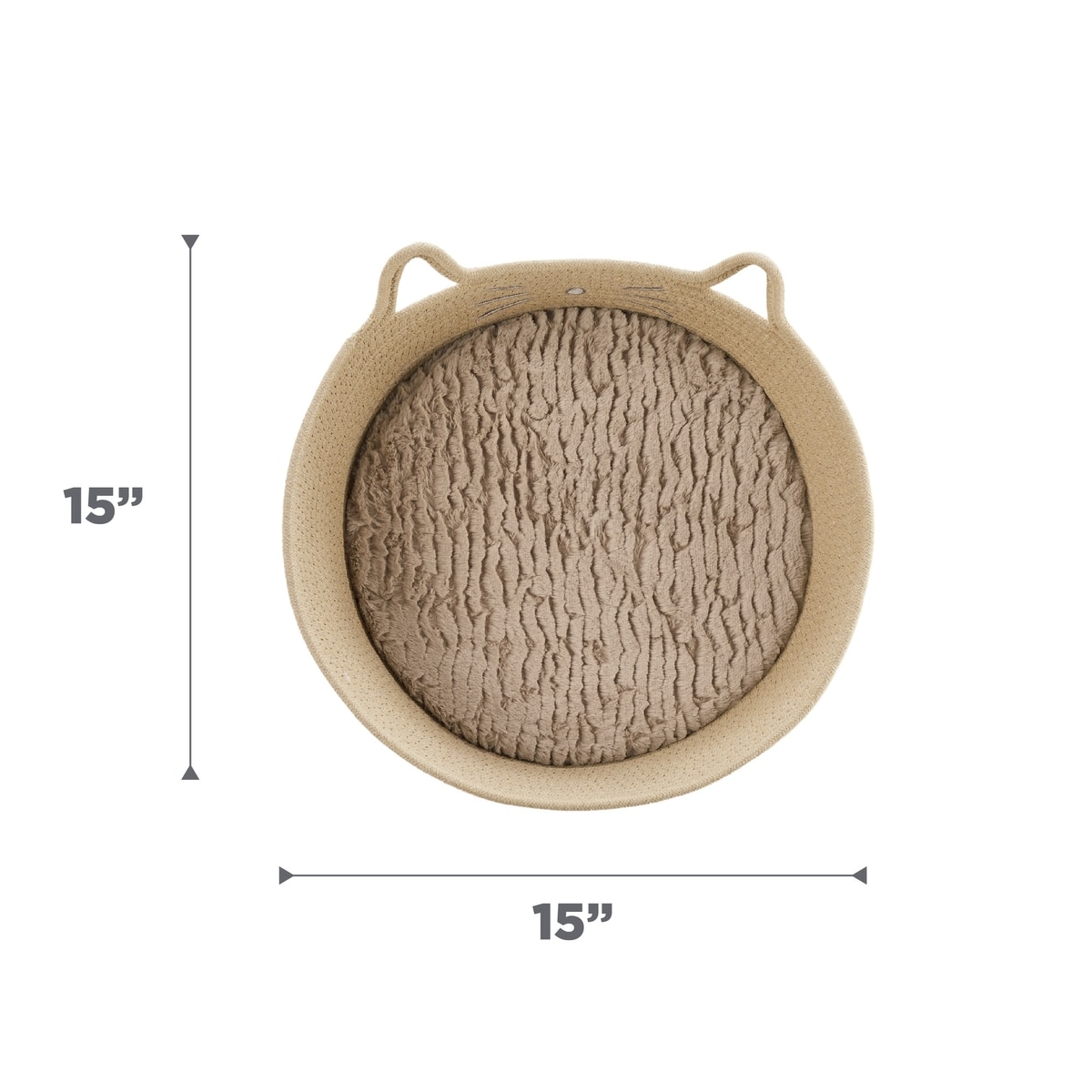Catstages Retreat 2-in-1 Bolster with Removable Cover, Cushion, Plush & Cotton Rope Cat Bed, Tan