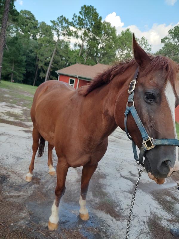 Wow, I truly did not expect to love this shampoo! It doesn't have much of a scent, but holy cow does it work! If I'm being truthful, by the time I was washing my mare, I was hot and exhausted and not really ready to put in much effort. I started with her tail and mane to let it sit the longest in there, it's pretty liquidy since it isn't a concentrate so I was careful not to use too much product. Moved onto her body, and scrubbed a good amount, but again, I was tired so I didn't work too hard here. I only let the product sit on her body long enough the then wash her mane and tail first. When washing her tail, it felt like I was rinsing conditioner out, it was so silky smooth! Also, this washes out SO easily!! Usually I feel like I'm back there 10 minutes trying to wash all the shampoo out, but this just comes out so easily, I was very surprised! Moving onto her mane and body was the same story, this stuff just comes right out! You know what also comes out? The dirt and grime! I think the total bath time from start to finish was maybe 25 minutes, I didn't put in any elbow grease, just scrubbed a decent amount and let it sit for a bit as I worked the opposite side, but it lifted all the gunk off her skin like it was nothing! I truly won't be buying anything else to wash my horses with! She felt and looked so clean afterwards with very minimal work on my part!