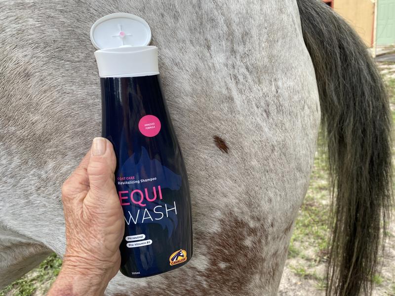 The Equi Wash shampoo worked well on my horse. It smells good but isn't strongly scented. Got a lot of dirt & loose hair out. Most importantly to me it was pretty easy to get all the product off without having to rinse him over and over and over.