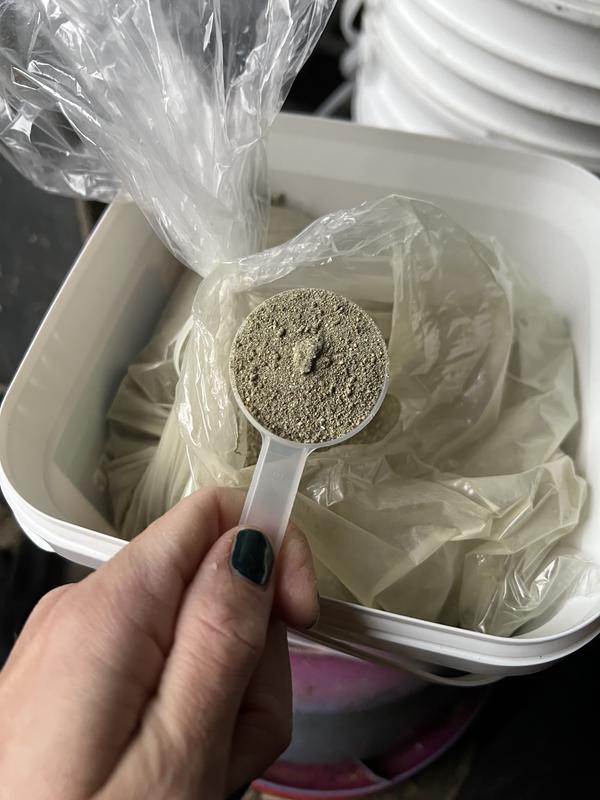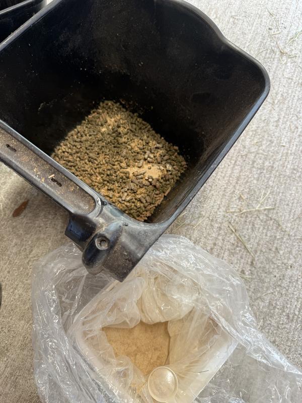 This was great to give my horse after a hard ride and getting back into working longer with him. The powder is nice and smooth with a slight mint/turmeric smell which made it easy to hide in their feed. The bag is big enough to twist tie back shut and the cover to container seals nice for longer storage. Great product.