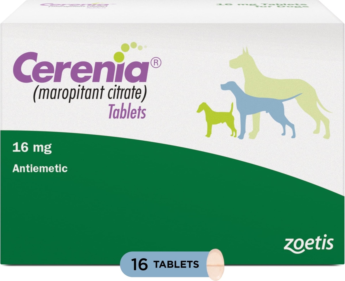 Cerenia (maropitant citrate) is the first FDA-approved veterinary medication to safely and effectively prevent vomiting due to motion sickness in dogs 4 months and older.* Cerenia starts working quickly to prevent your dog's vomiting and should not cause drowsiness.