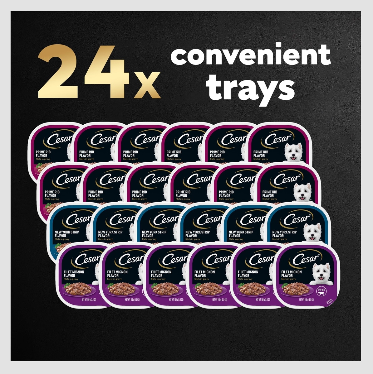 Cesar Filets in Gravy Beef Flavors Variety Pack Small Breed Adult Wet Dog Food, 3.5-oz tray, case of 24