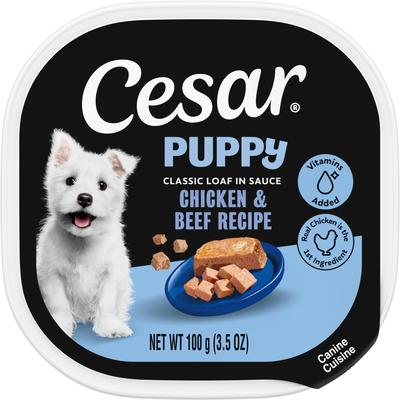 Cesar Puppy Classic Loaf in Sauce Chicken & Beef Recipe Small Breed Wet Dog Food Trays, 3.5-oz, case of 24