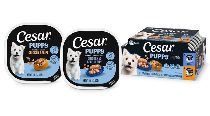 Spoil your puppy with protein-packed recipes that promote a happy & healthy puppy. Every meal becomes a special occasion with two delicious flavors to choose from - Cesar Puppy Filets in Gravy Chicken Recipe and Cesar Puppy Loaf in Sauce Chicken & Beef Recipe. Each is slow cooked for a juicy, tender texture that puppies love.