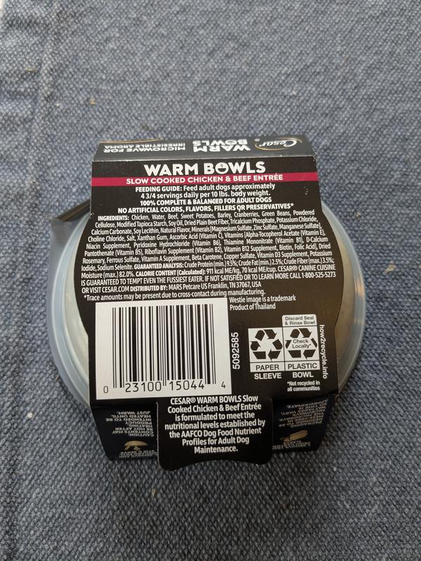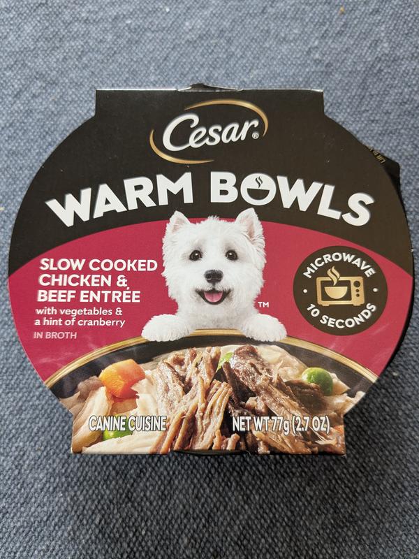 • Cesar Warm Bowls’ packaging is designed for effortless, mess-free heating in the microwave, so you can offer your pup a warm meal with ease.