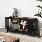 Cesicia Furniture Style Cat House with Tempered Glass, White