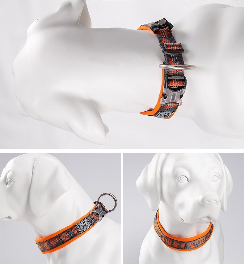 Chai's Choice Premium Dog Collar, Orange & Gray, Medium