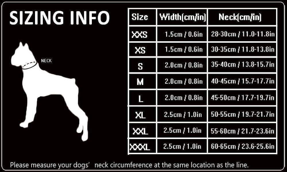 - Dog collar is lined with soft, neoprene padding to protect your doggo’s neck.