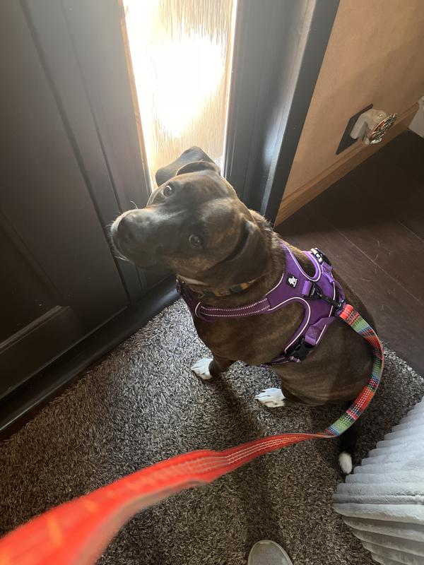 This harness is designed to be slipped over your dog's head, then buckled behind their front legs for a snug and safe fit.