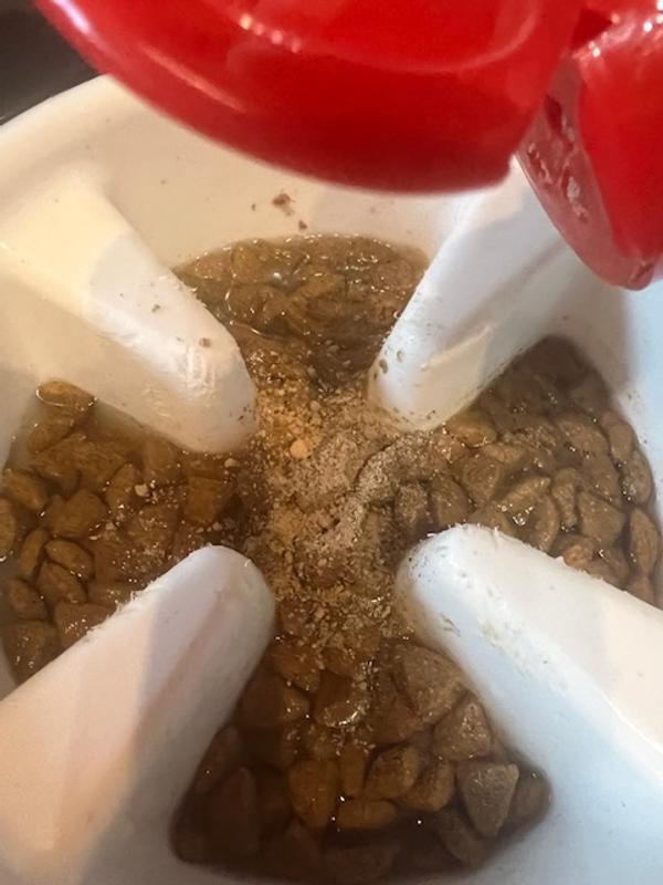 Flip open the handy shaker bottle and sprinkle on your dog’s food. Then watch every bite magically disappear!