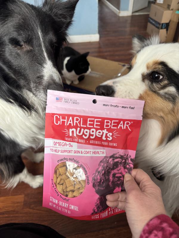 What’s crunchy on the outside and loaded with a yummy filling dogs crave? Charlee Bear Nuggets dog treats! Each recipe is crafted with wholesome ingredients like chickpeas and strawberries, plus special nutrients to help pups like yours thrive.