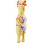 This is a very well made toy. It's not like many toys where the plastic is thin. Then there is that squawk, my girls love it. Good thing I also purchased the rooster version. So far so good, cheap toys do not last long with my Swissie girls. Of course shipping was fast.