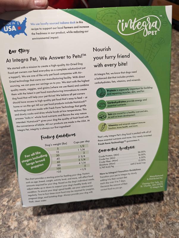 Chasing Our Tails Integra Just Ducky Air Dried Complete Dog Food, 2.5-lb box