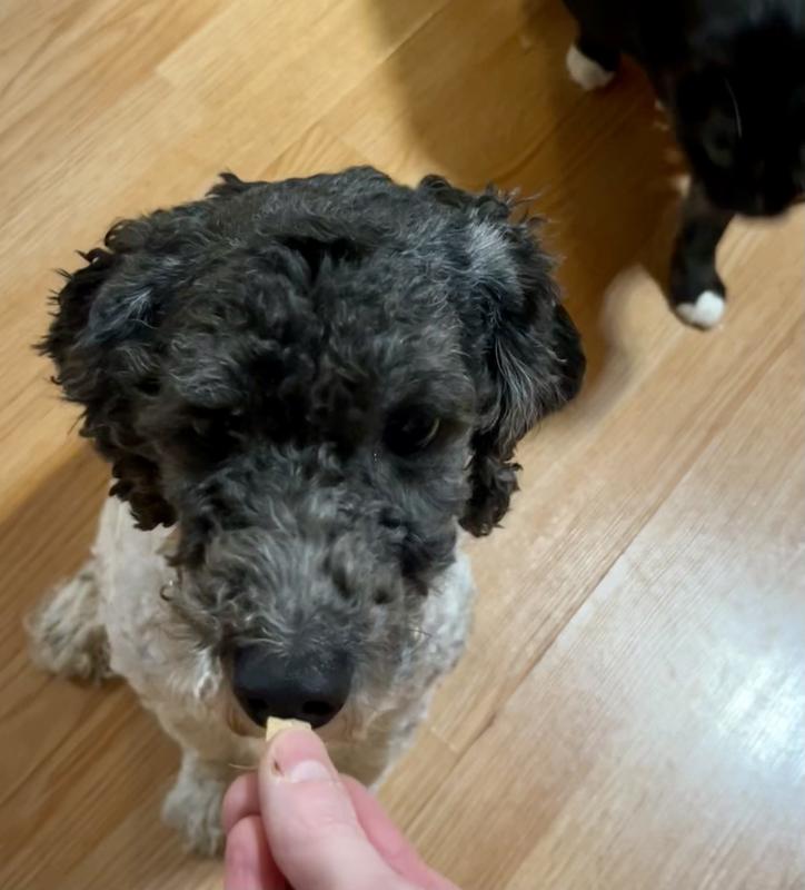 Even before I opened the box from Chewy, my dog Chrissy was already curious. Clearly, this food smells really tasty to dogs! Chrissy also really loves the taste! So far I’ve only used it as a topper and for treats, but I will try gradually replacing her food with it. She’s on a prescription dog food for digestive issues, so I’ll tap to her vet about it but so far, this yummy food is Chrissy-approved!