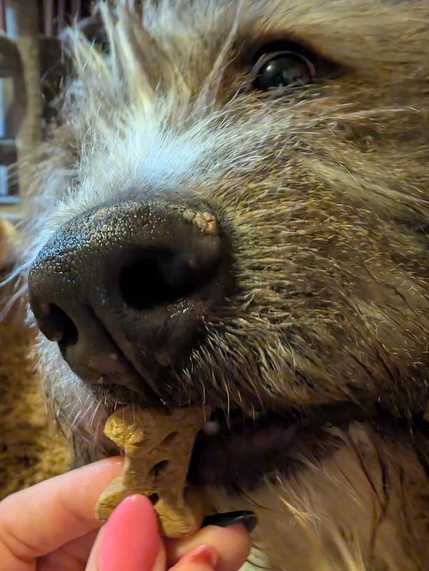 I liked the that the ingredients were simple and seemed like a healthier choice for treats. Unfortunately they are a little large for my Shih Tzus (about 1 & 1/2 inch) which wasn’t clear from the description. Two of my dogs will eat them reluctantly and my third will just take it to her blanket but refuses to eat it. There are also more calories per biscuit than I normally give them. So maybe a better choice for larger dogs.