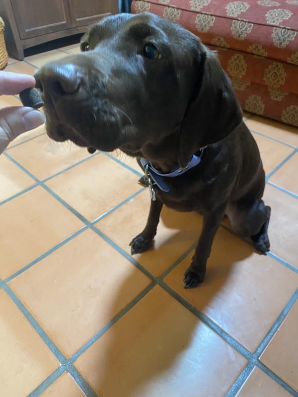 Coco is in training to be a diabetic alert dog, so we are very picky as to what she eats. And she needs lots of training…so we tried these. Coco was *very* attentive and treated them a high value treat, meaning she listened carefully, did the command, and was happy to receive the reward. Coco is 60 pounds, one was fine but disappeared instantly; we also are training a friend’s companion dog and he is tiny, so we give him a half sized nibble with each command.