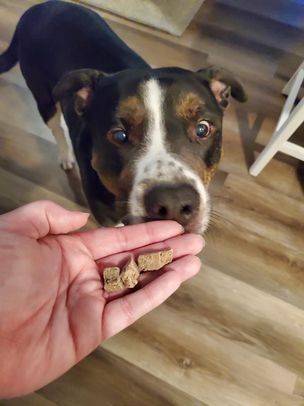 First, I really like the whole food ingredients - named whole meat sources, no by products! Second, I also appreciate the inclusion of collagen for healthy joints as one of my dogs is getting older (9 years for a cane corso is geriatric). Finally— the dogs love it so that’s a win! It’s joining our rotation of toppers. Personally, I use warm water to hydrate it before serving. The dogs (and honestly even my cats!) love it that way!